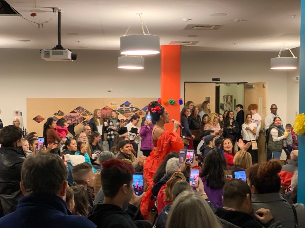 At El Centro’s stage for DDLM, a performer from Bellingham is emulating and paying their respects to Selena. (Photo taken by John Petrovich, group 8).