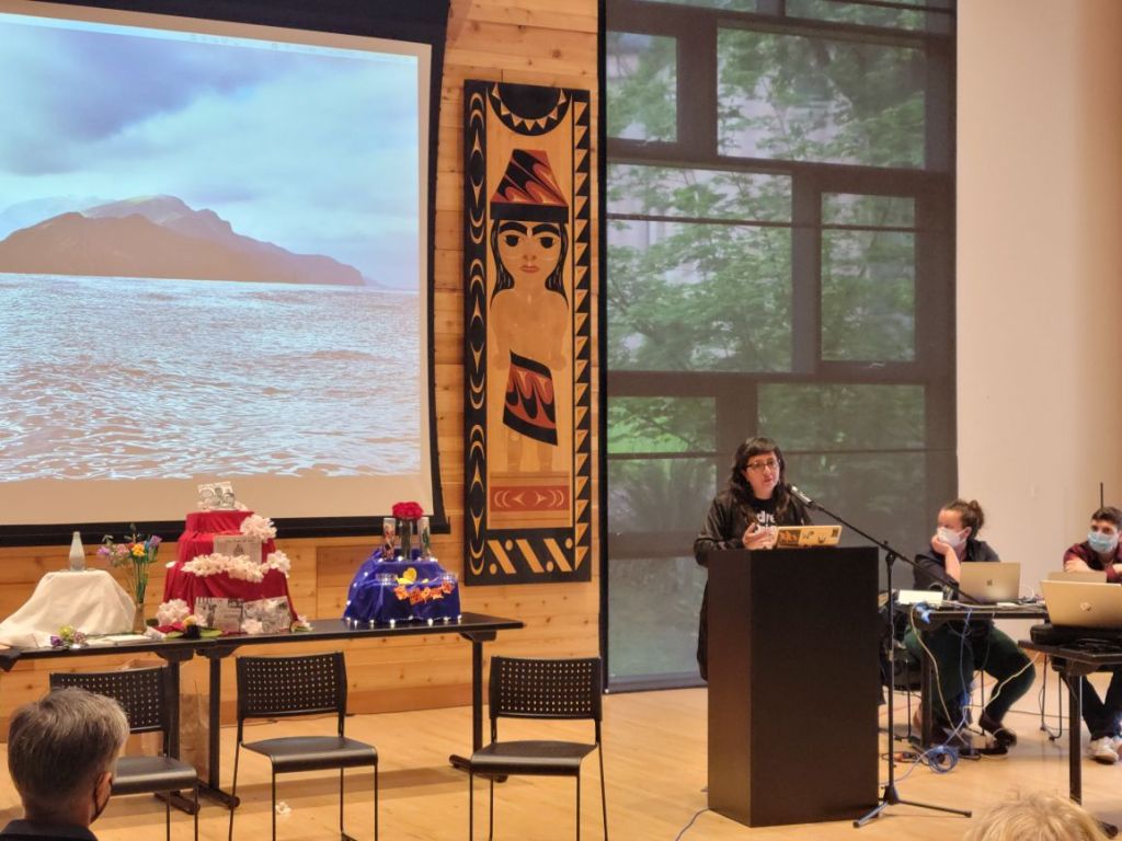 People: Maylei Blackwell (left), Black Mama (middle), Cristina Burneo Salazar (right), Michelle Habell-Pallan (at the podium)