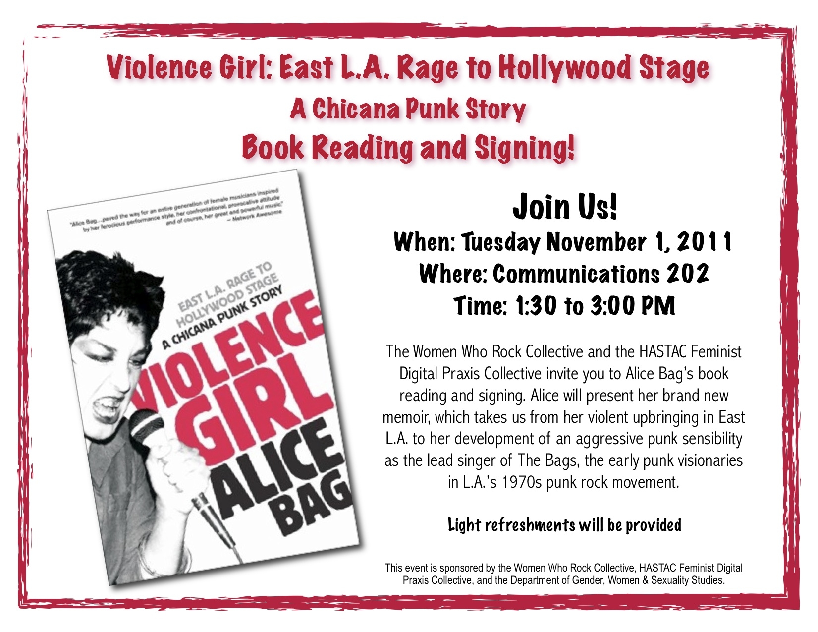 Chicana Punk Memoir: A reading by Alice “Bag” Armendariz. Tues. November 1. University of Washignton. Free and open to the public!