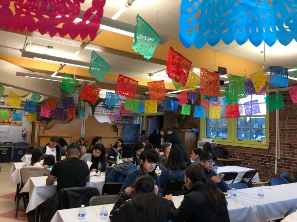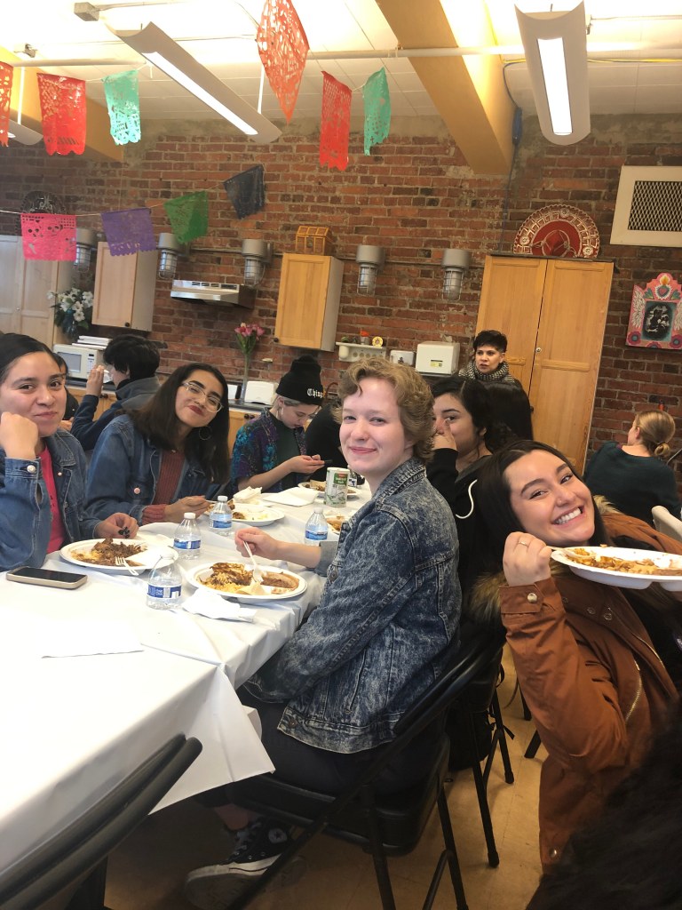 – This photo was at the Dia De Los Muertos Celebration, in El Centro De La Raza’s Seattle, WA. Taken by Group 9 , UW students in GWSS 451 on November 1 2019. The capture represents People from different cultures sitting on one table and enjoying Mexican food tradition lunch altogether.