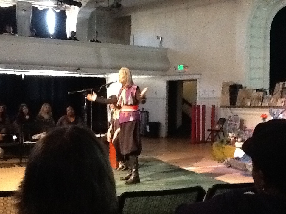 What you are about to experience is you are in the presence of a legend. I first heard Nobuku Miyamoto when I listened to her amazing album of 1973. I had memorized all of the songs of that album, so when I heard her live in 1993, I was blown away. Here, we feel the history of past Women Who Rock gatherings and the future. When we come together in this way, we feel the coming together of art, politics, and community building. And I experienced that when I first heard Nobuko’s work. 20 years ago she founded Great Leap, an organization that originally first focused on Asian American issues. But in 1992, after the LA Uprising, that shifted to address the complexities of communities in Los Angeles. I best describe her as a community artivista. I love that daily she is working at the community level. This morning a bunch of us learned one of her dance choreographies and am hoping we might be able to share it with you later. But for now, I share one of the gestures with you.